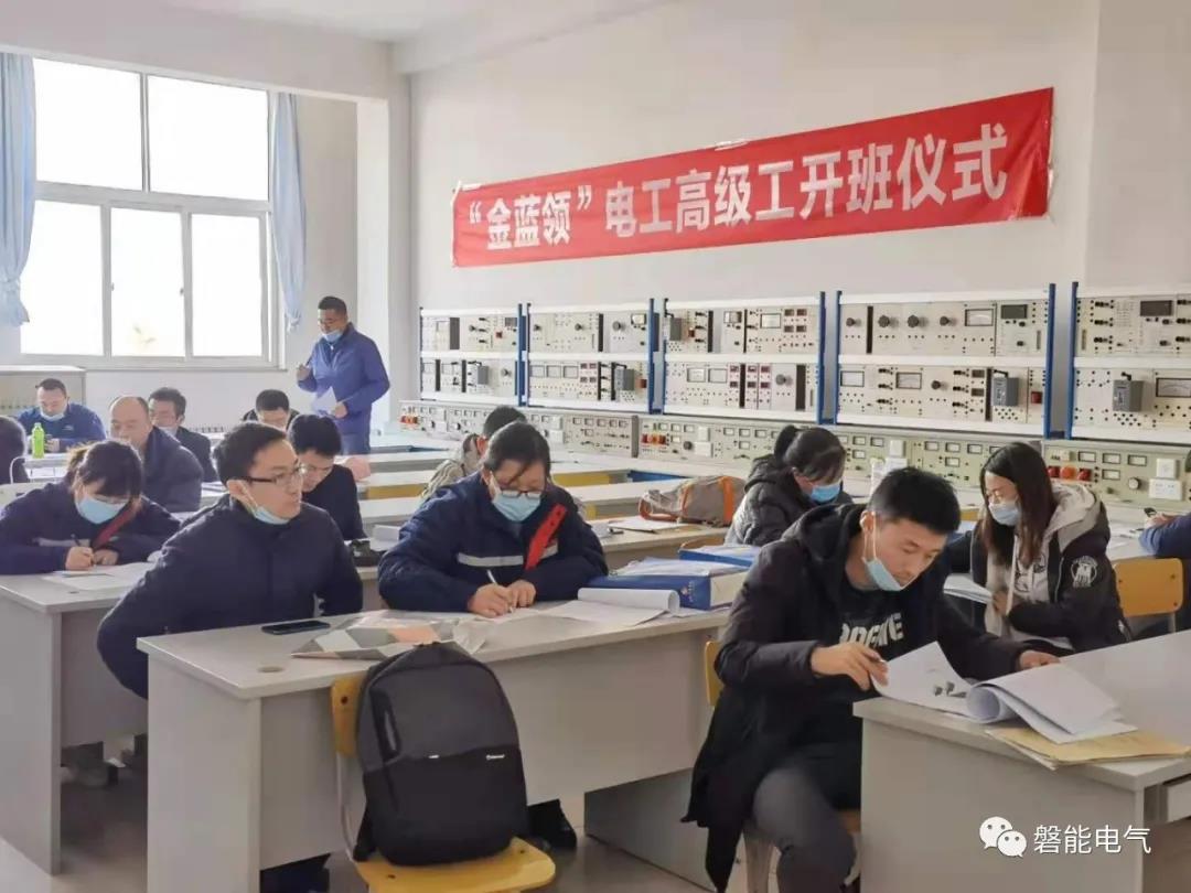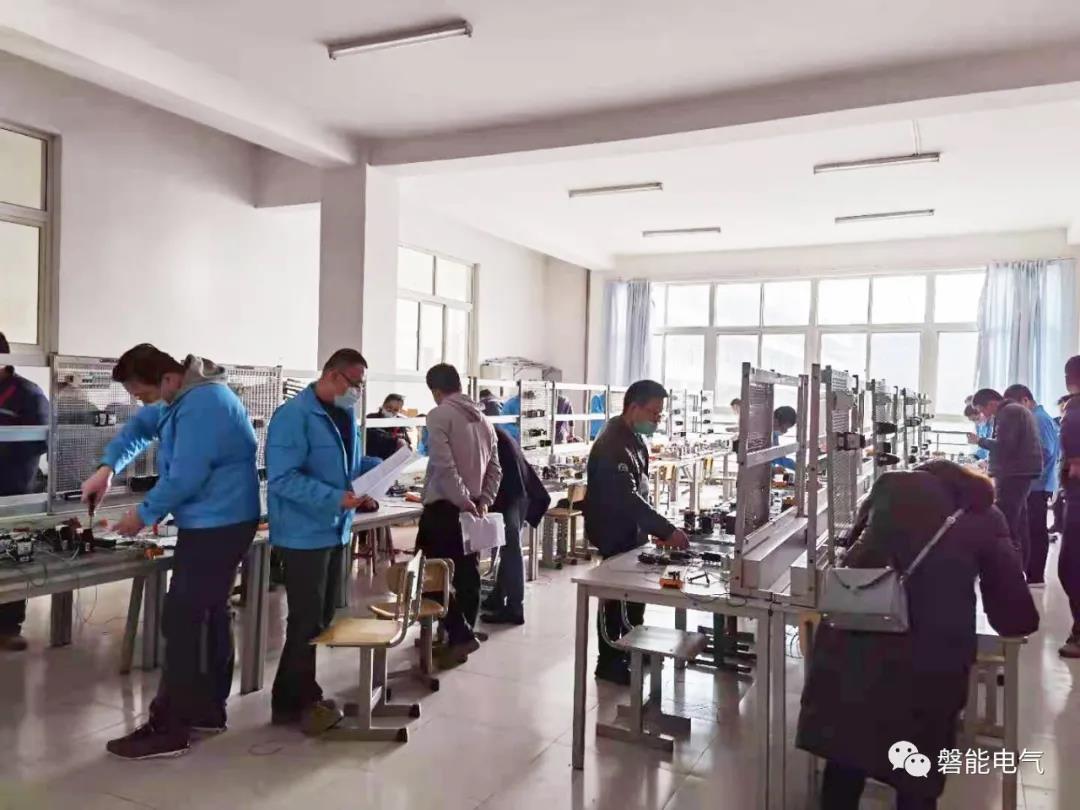 “金蓝领”技师、高级工项目培训自2020年8月份开始,磐能电气领导高度重视,通过与烟台职业学院合作,学院抽调经验丰富的骨干教师组成培训团队,制定详细的教学计划,精心准备教案、课件、实训项目等,充分利用周六、周日及节假日,采用线上和线下相结合的模式授课,将理论学习与技能实操结合,提升每位员工的综合素质。
